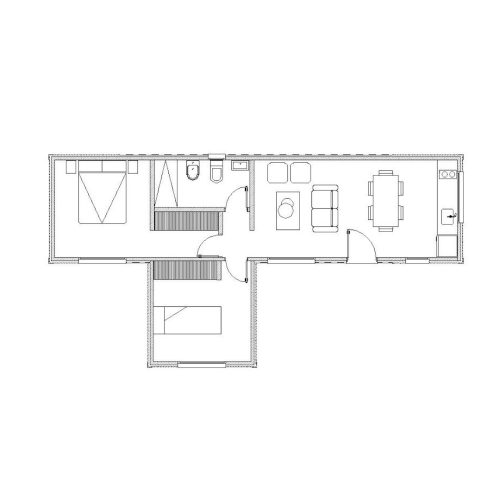 Módulo Attila Basic de 45 m2 (tres ambientes) transportable y ampliable.